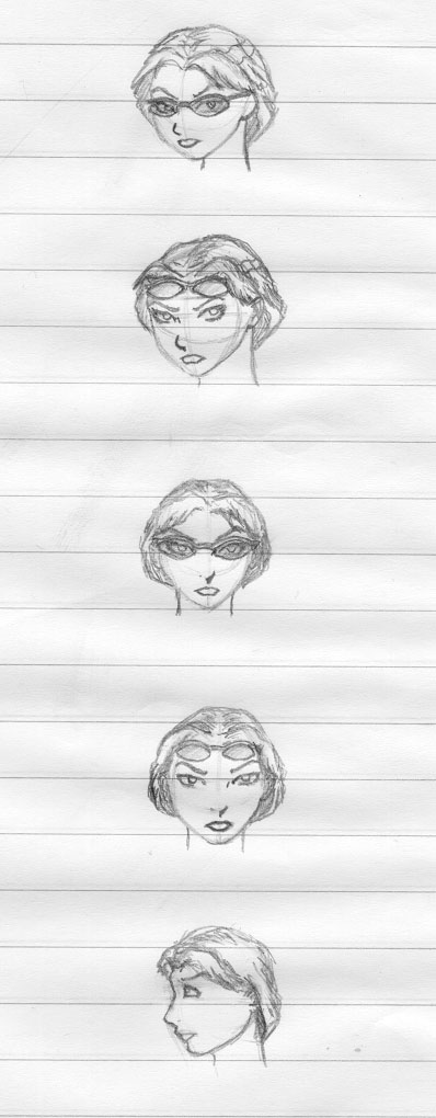 ??.?? A study of the female anime head. I did this during my brief obsession with anime, brought upon by Patrick Shettlesworth's Polykarbon tutorials. I was drawing this while reading a tutorial. This character was just someone I created offhand just to practice anime. Definitely check the tutorials out when you have the time . . . they'll change your life ::slightly:: If you're wondering why the last head is without glasses, it's because, at the time, I couldn't draw glasses from the side very well. Thus, I just left them out. |