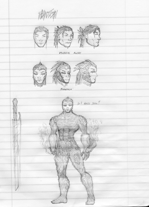 ??.?? Another of my ::keeper:: characters. The ::Phantasm:: is my very first character . . . in fact, this very web site is named after him. Basically, he's my answer to Spawn and The Darkness. Later on, I decided that the suit looked too . . . weird for my tastes. Further, it was just plain boring. The head portion of the suit is fine, but the body portion had to go, except for the fire/smoke coming out of his hands. The sword needs to be more elaborate as well. |