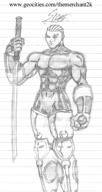 ??.?? Another of my ::keeper:: characters. The ::Phantasm:: is my very first character . . . in fact, this very web site is named after him. Basically, he's my answer to Spawn and The Darkness. Well, this is the last version I ever did. I added more detail to the gloves and boots. Also, I gave him a little tattoo over his left eye. For whatever reason, I got rid of the organic material over his arms . . . I think I'll add them again in future renditions. What do you think? One thing's for sure: that sword needs some ::serious:: revision. |